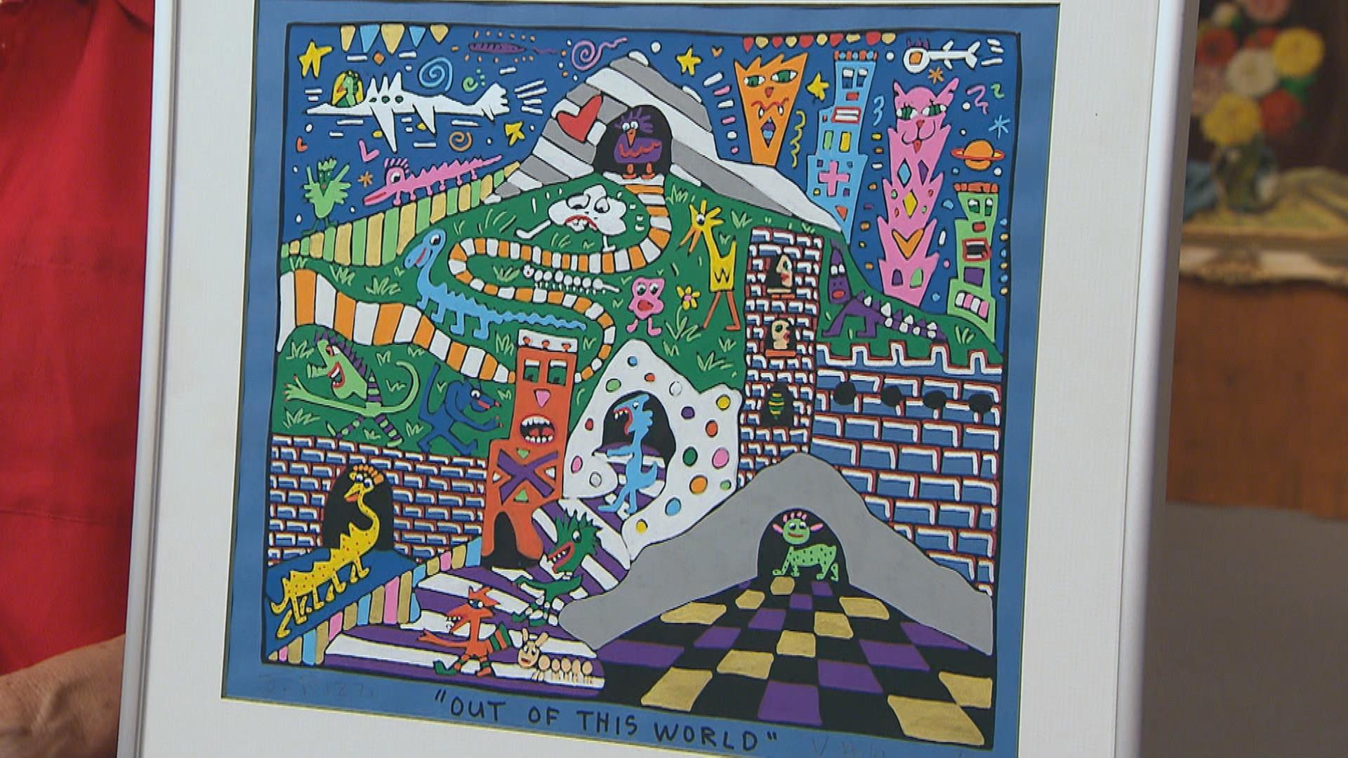 Nicht von dieser Welt: Ein bunter Druck des berühmten Künstlers James Rizzi sorgt am Expertisentisch für gute Laune. Wie viel kann so ein farbenfrohes Bild auf dem Markt einbringen?