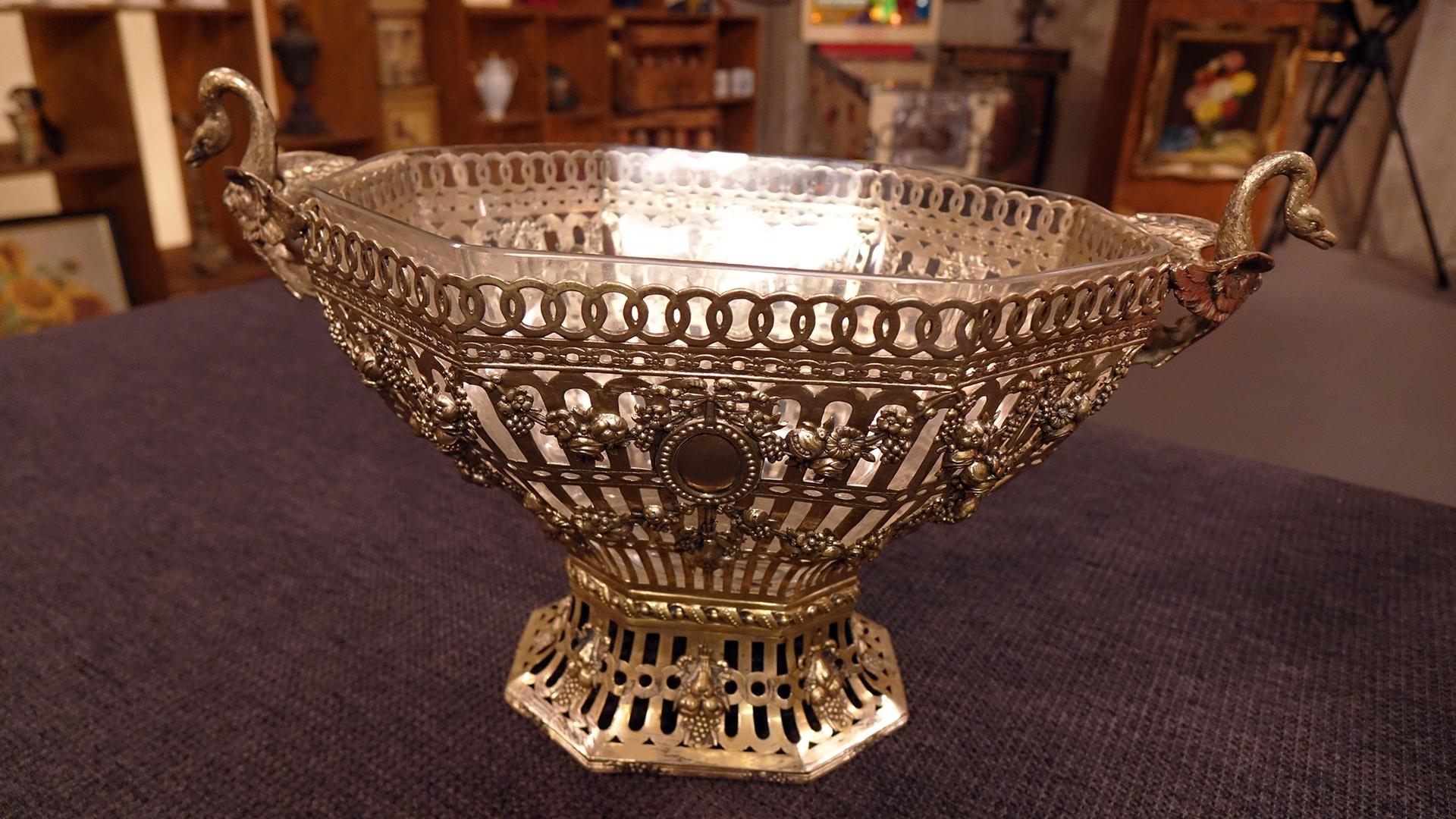 Horst Lichter und sein Team präsentieren einen Kerzenständer, eine Bronzeplastik von Hugo Taglang, ein Granat-Armband, Porzellanfische und einen Tafelaufsatz.