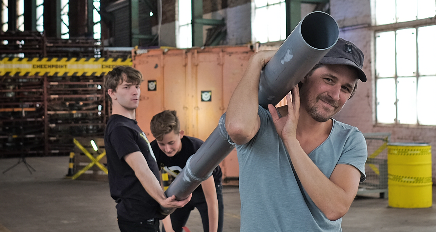 Tommy, Felix und Christian können mit Blasrohren gut zielen und schießen. Aber gelingt das auch mit einem meterlangen Riesenblasrohr?