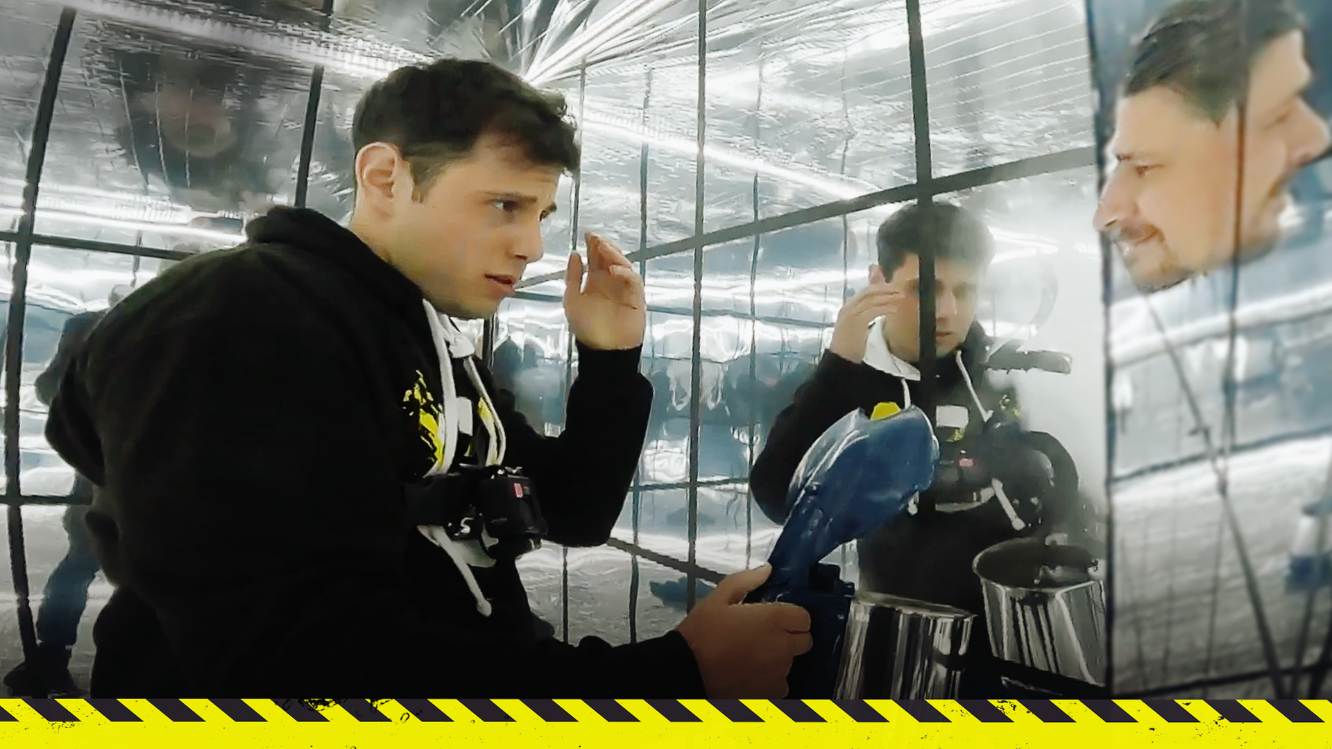 Alles spiegelverkehrt bei Mädchen gegen Jungs: Eine Drohne durch den Blick in den Spiegel fliegen, verkehrt herum Feuer löschen und Rätsel lösen im verspiegelten Escape-Room!
