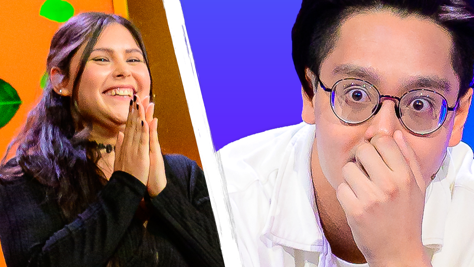 "Tanoshii": Im Splitscreen sind Valena, mit einer Siegerpose und Raffey zu sehen, der entsetzt  schaut.