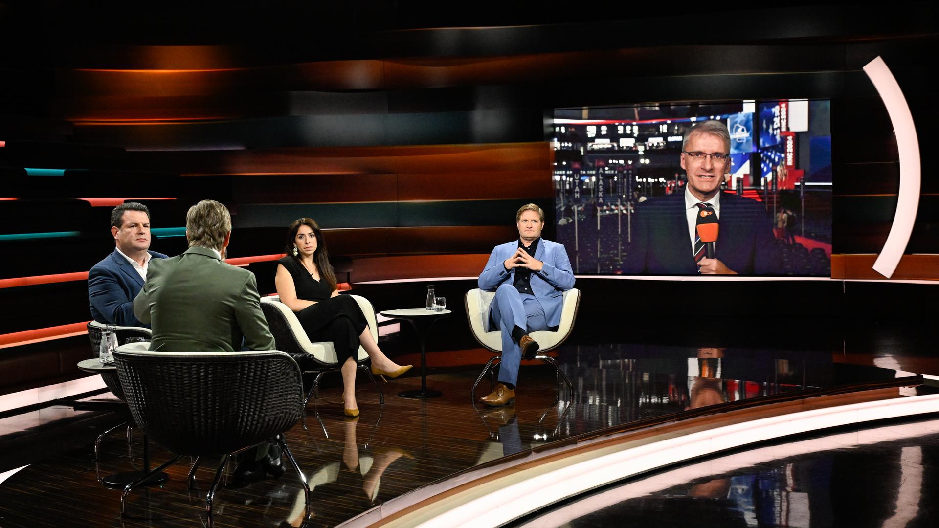 Zu Gast: ZDF-Korrespondent Elmar Theveßen, SPD-Politiker Hubertus Heil, Journalist Michael Bröcker und Bundestagsabgeordnete Melis Sekmen