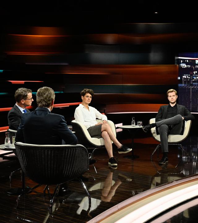 Zu Gast: ZDF-Korrespondent Elmar Theveßen, CDU-Generalsekretär Carsten Linnemann, Journalistin Anna Lehmann und Wirtschaftsjournalist Julian Olk